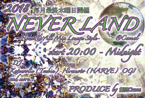 10/31-thu- NEVER LAND 毎月最終木曜日開催 start 20:00 - Midnight -House&All Mix Lounge Style- -DJ- Katsu Volic (Tenbin) Hiramoto (HARVE)