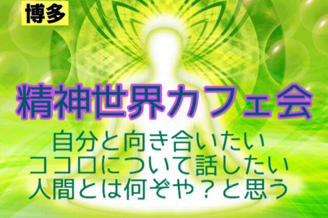 ★☆福岡博多イベント情報@九州カフェ会★☆ こんにちは(^^) 毎回好評の『精神世界カフェ会』を博多で開催します!!∩^ω^∩ 精神世界カフェ会って何じゃそりゃぁ〜?!って 思われる方も多いと思いますが、、、 ザックリと言えば… 『ココロ』について語ろう!!という会です(*^ω^*) 今後AIが大活躍する時代と言われ 人間って何だろう? ココロって何だろう? AIと人間の違いは?? なんて考える方もいると思います! こんなことを皆さんで話して共有しませんか? 答えがあるわけではありませんが 誰かと話すことで何か見えるかも