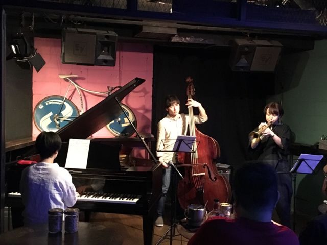 10月3日(木)20:30〜23:00(2セット) まじめとりお LIVE <出演>まじめとりお 中西曉子(trumpet) 矢藤亜沙巳(piano) 大塚義将(bass) ライヴチャージ 1500円(入れ替え無し)、 テーブルチャージ 500円(ナッツ類食べ放題)、 ドリンク類 500円〜、 従いまして、ミニマム料金は2500円です。 ■この6月の初登場ライヴが大好評でした まじめとりおが再びやって来ます。 とても心地良くめちゃ楽しいライヴですので お時間ございましたらぜひともお越し下さい。