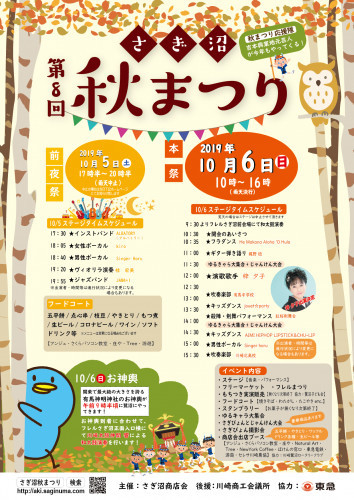 毎年声をかけていただいている、川崎市宮前区鷺沼のお祭り。春の桜祭りに続き、秋の一大イベント『 さぎ沼秋まつり 』が今週末に開催されます! 今年も明後日10/6(日)の本祭、そして明日10/5(土)に前夜祭が開催され、両日出演させていただきます! 秋まつりのシーズンですね! ぜひ遊びに来てくださいね!!さぎ沼駅前でお待ちしています! <Singer haru official homepage> http://mbsp.jp/harupoti9000/ 【Facebook Singer haru ページ】 https://www.facebook.com/singerharu/ 【Twitter】 https://twitter.com/singerharu9