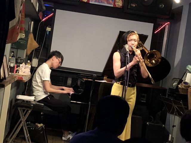 柳隼一(p)さんとSasammyさんのデュオです。 一昨年、この二人によるCD「Rainbow's End」が発売されています。 柳さんは、h.s.trashではすっかりおなじみ、繊細なピアノに魅了されます。最近は、海外での演奏も多く、高い評価を得ています。 Sasammyさんは市川出身で、市川学園の卒業です。 リズム感溢れるテノールで聴かせると思えば、トロンボーンも演奏する多彩な人です。 また、男性でありながら女性の心を持つ中世的なキャラクターで、音楽のみならず、ビジュアルな面でも多くの人を惹きつけています。 お誘いあわせの上、