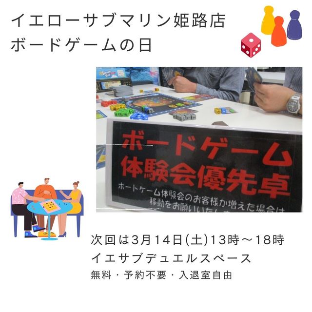 ¥¤¥¨¥µ¥Ö¥Ü¡¼¥É¥²¡¼¥à¤ÎÆü Æü»þ¡§3·î14Æü¡ÊÅÚ¡Ë13»þ¡Á18»þ ²ñ¾ì¡§¥¤¥¨¥í¡¼¥µ¥Ö¥Þ¥ê¥óɱϩŹ ¥Ç¥å¥¨¥ë¥¹¥Ú¡¼¥¹ JR¡¦»³ÅÅ¡Öɱϩ±Ø¡×²¼¼Ö¤ß¤æ¤­Ä̤êË̤ØÅÌÊâ7ʬ¡Ê¥À¥¤¥½¡¼²£¡Ë »²²ÃÈñ̵ÎÁ ʰ÷¤µ¤ó¤Ë¤ªÀ¼¤«¤±²¼¤µ¤¤¡£ ÆþÂ༼¼«Í³¡¦Í½ÌóÉÔÍס¦¥Ü¡¼¥É¥²¡¼¥à¤Î»ý¤Á¹þ¤ß²Ä ¤ªµ¤·Ú¤ËÍ·¤Ó¤Ë¤¤¤é¤·¤Æ²¼¤µ¤¤¡ª¡ª
