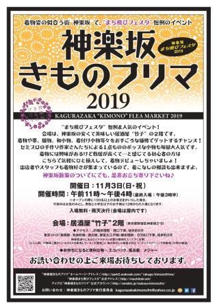 “神楽坂きものフリマ 2019” 着物の似合う街“神楽坂”で行っている“神楽坂きものフリマ”です。 毎秋に行われる街の文化祭“神楽坂まち飛びフェスタ”の参加イベントとして今年も開催いたします! 開場前からたくさんのお客様がお並び下さる大人気イベント! 今回も神楽坂2丁目のリーズナブルな居酒屋“竹子”をお借りしての開催です。 会場となるのは2階の1フロア(イス+テーブル形式)。 状態が良く、すぐに使えるアンティークやリサイクルの着物、帯、お履物、和装小物、 そして半襟やバッグ、洋服、アクセサリー、小物等のリ