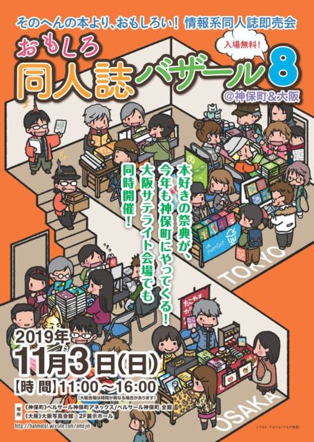 11月3日に神田で開催される おもしろ同人誌バザールに 謎フード公安委員会が出展します 概要に書きますが このイベントは入場無料で この日は神田の古本まつりも開催しているので それと一緒に足を運ぶと 古本や色々な情報誌が見れて楽しいかと思います 予定が空いていれば是非遊びに来てください ■イベント名 おもしろ同人誌バザール8 ■開催日 日付 11月3日(日) 時間 11時〜16時 ■会場 ベルサール神保町アネックス イベントホール (神保町駅A2出口徒歩2分) ■入場料 無料 ■概要 おもしろ同人誌