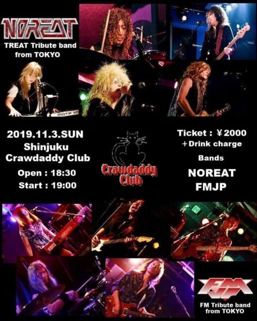 11/3 ËÜÆü¤Î¥é¥¤¥Ö¡¡ Noreat(Treat Tribute Band) & FMJP(FM Tribute Band) Live OPEN 18:30 START 19:00 CHARGE 2000±ß