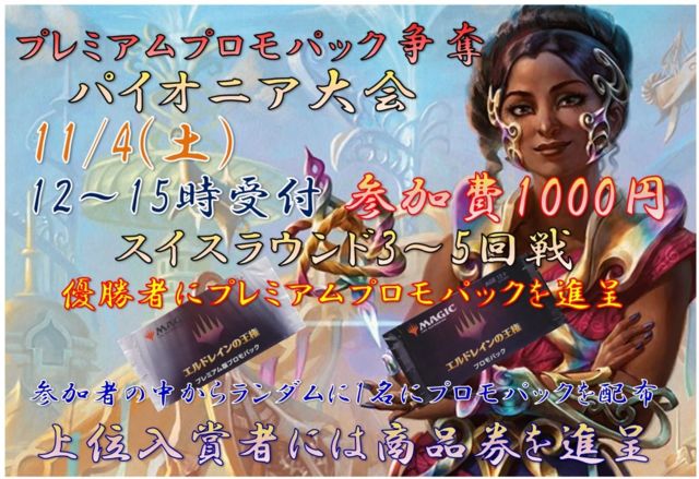 DCI¸øÇ§ ¥×¥ì¥ß¥¢¥à¥×¥í¥â¥Ñ¥Ã¥¯ÁèÃ¥¥Ñ¥¤¥ª¥Ë¥¢Âç²ñ ¤Î¤´°ÆÆâ¤Ç¤¹¡£ ¼õÉÕ¤Ï ÅöÆü¡¡12¡§00¡Á15¡§00 ¤È¤Ê¤Ã¤Æ¤ª¤ê¤Þ¤¹¤Î¤Ç»²²Ã´õ˾¤Î¾ì¹ç¤Ï¾åµ¤Î»þ´Ö¤ËÃÙ¤ì¤Ê¤¤¤è¤¦¤Ë¤´ÍèŹ¤¯¤À¤µ¤¤¡£ÅöÆü¼õÉÕ¤ÏÀèÃå½ç¤È¤Ê¤ê¤Þ¤¹¡£ »²²ÃÈñ¤Ï1000±ß¤Ç¤¹¡£ ¹½ÃÛ·Á¼°¤Ï¥Ñ¥¤¥ª¥Ë¥¢¡Ê¡Ö´ðËÜ¥»¥Ã¥È2014°Ê¹ß¤Î´ðËÜ¥»¥Ã¥È¡×¡õ¡Ö¥é¥ô¥Ë¥«¤Î²óµ¢°Ê¹ß¤Î¥¨¥¥¹¥Ñ¥ó¥·¥ç¥ó¡×¢¨Unstable¤Ï½ü¤¯¡Ë¤È¤Ê¤ê¤Þ¤¹¡£ °ìÉô¶Ø»ß¥«¡¼¥É¤¬¤¢¤ê¤Þ¤¹¤Î¤Ç¹½ÃۤκݤϤ´Ãí°Õ¤¯¤À¤µ¤¤¡£ ¶Ø»ß¥«¡¼¥É¤Ë¤Ä¤¤¤Æ¤Ï¤³¤Á¤é¤ò¤´»²¾È¤¯¤À¤µ¤¤¢ http://mtgwiki.com/wiki/%E3%83%91%E3%82%A4%E3%8