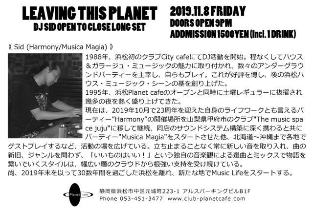 2019.11.8(Fri.) ¡ÉLEAVING THIS PLANET"
