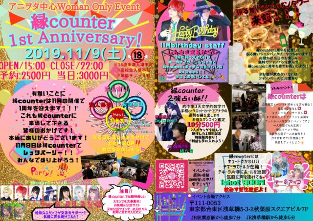 ¥¢¥Ë¥ò¥¿&¥¢¥Ë¥³¥¹¥ì¥¤¥ä¡¼Ãæ¿´ Woman Only Event ±ïcounter Âè7²óÌܳ«ºÅ ±ïcounter1¼þǯspecial party ²ñ¾ì︰½©ÍÕ¸¶¥Ï¥ó¥É¥ì¥Ã¥É¥¹¥¯¥¨¥¢¶æ³ÚÉô7F Æü»þ2019ǯ11·î9Æü㈯ 15︰00¡Á22︰00 Æþ¾ìÎÁ︰»öÁ°Í½Ìó/2500±ß ÅöÆü/3000±ß 18ºÐ°Ê¾åÆþ¾ì²Ä¡¢¹â¹»À¸»²²ÃÉÔ²Ä ¸ø¼°Twitter/@L_cos_encounter ¸ø¼°HP/https://lcosencounter.wixsite.com/encounter ±ïcounter¤Ï¥¢¥Ë¥ò¥¿&¥¢¥Ë¥³¥¹¥ì¥¤¥ä¡¼Ãæ¿´¤Î½÷À¸ÂÄꥤ¥Ù¥ó¥È ¥³¥¹¥×¥ì»²²Ã¤â