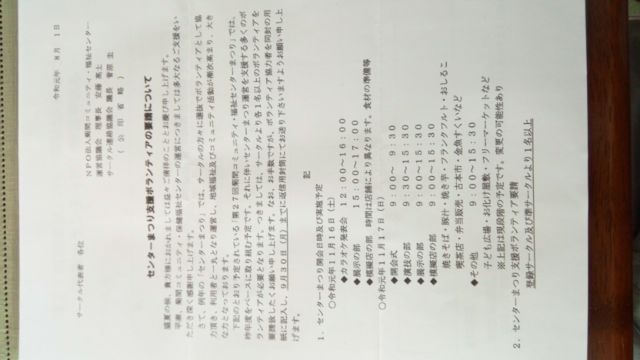 今年も例年通りセンター祭りが開催されます。 詳細は添付の通りです。 宜しくお願いします。
