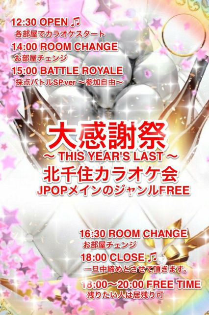 やほほいっ!(●^o^●) はじめまして&お久しぶりですっ☆ カラオケがとーっても大好きな へっぽこ幹事、雪野です( v^-゜)♪ 今年もあとわずかになってまいりました! え…一年経つの早すぎへん…?って震えてますが(笑) 今回も寒さぶっ飛ばして歌いましょう!\(^o^)/ ★☆今回チェック柄の服または小物を身に付けてこられた方にお得な割引ございます☆★ ♪♪♪今月の特別部屋♪♪♪ Mr.Children&B'z部屋 これはもう夢のコラボ!! 歌うしかありませんな!笑 L'Arc〜en〜Ciel&GLAY&Janne Da Arc部屋 あ、幹事の気ま