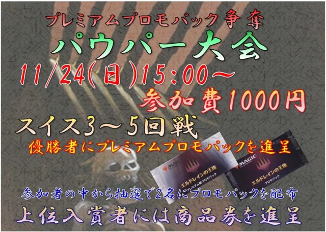 DCI¸øÇ§ ¥×¥ì¥ß¥¢¥à¥×¥í¥â¥Ñ¥Ã¥¯ÁèÃ¥ ¥Ñ¥¦¥Ñ¡¼Âç²ñ ¤Î¤´°ÆÆâ¤Ç¤¹¡£ ¼õÉÕ¤Ï ÅöÆü¡¡12¡§00¡Á15¡§00 ¤È¤Ê¤Ã¤Æ¤ª¤ê¤Þ¤¹¤Î¤Ç»²²Ã´õ˾¤Î¾ì¹ç¤Ï¾åµ¤Î»þ´Ö¤ËÃÙ¤ì¤Ê¤¤¤è¤¦¤Ë¤´ÍèŹ¤¯¤À¤µ¤¤¡£Í½Ìó¼ÔÍ¥Àè¡£ÅöÆü»²²Ã¤ÏÀèÃå½ç¤È¤Ê¤ê¤Þ¤¹¡£ »²²ÃÈñ¤Ï1000±ß¤Ç¤¹¡£ ¹½ÃÛ·Á¼°¤Ï¥Ñ¥¦¥Ñ¡¼¡Ê¥³¥â¥ó¥Ç¥Ã¥¹½ÃۡˤȤʤê¤Þ¤¹¡£ °ìÉô¶Ø»ß¥«¡¼¥É¤¬¤¢¤ê¤Þ¤¹¤Î¤Ç¹½ÃۤκݤϤ´Ãí°Õ¤¯¤À¤µ¤¤¡£ ³µÍס¦¶Ø»ß¥«¡¼¥É¤Ë¤Ä¤¤¤Æ¤Ï¤³¤Á¤é¤ò¤´»²¾È¤¯¤À¤µ¤¤¢ http://mtgwiki.com/wiki/Pauper ÂÐÀïÊý¼°¤Ï¥¹¥¤¥¹¥É¥í¡¼¤ÎºÇÂç5²óÀï¤Ç¤¹¡£ ³Æ¥Þ¥Ã¥Á¤Ï2ËÜÀè¼èÀ©¤Ç¤¹¡£ ¥é¥¦¥ó
