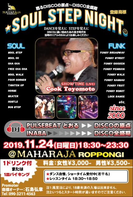 ¡ú¡ú¡úSOUL STEP NIGHT(ÅÐÏ¿¾¦É¸)¡ú¡ú¡ú ÍÙ¤ê¤ò³Ð¤¨¤ËDISCO¤ËÄ̤¤µÍ¤á¤¿ DISCO¸¶ÅÀ»þÂå¡ÁDISCOÁ´À¹´ü¤Î¤¢¤ÎÎɤ»þÂå¤òÅö»þ¤ÎDJ¤Ë¤è¤ê¤ª³Ú¤·¤ß¤¯¤À¤µ¤¤¡£ ½é»²²Ã¤ÎÊý¤â¥ì¥Ã¥¹¥ó¥¿¥¤¥à¤â¤¢¤ê¤Þ¤¹¤Î¤Ç¤´°Â¿´¤¯¤À¤µ¤¤¡£ [Æü»þ] 2019.11.24(Æü)18:30¡Á23:30 [²ñ¾ì] Ï»ËÜÌڥޥϥ饸¥ã ÅìµþÅÔ ¹Á¶è Ï»ËÜÌÚ3-12-6Ï»ËÜÌڥץ饶¥Ó¥ë5F [DJ] ¢öPULSEBEAT¤È¤ª¤ë(DISCO¸¶ÅÀ»þÂå) ľÌÚ¾Þºî²È ÀõÅļ¡ÏºÃø¤Î¡Ø²âĮʪ¸ì¡Ù¤ËÀÐÅĵü¤¬²òÀâ¤Ç½Ð¤Æ¤ª¤ê¤Þ¤¹¡£ ¢öHOSSHI(DISCOÁ´À¹´ü»þÂå) ²£ÉͤÇŤ¤Ë¤ï¤¿¤êDJ¤ò¶Ð¤á¤ë [¥ì¥Ã¥¹¥ó¥¿¥¤¥à] 18:30¡Á