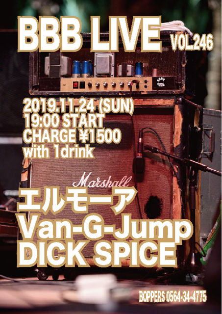 BBB LIVE 246 2019.11.24 (SUN) 19:00 START CHARGE \1500 with 1drink ¥¨¥ë¥â¡¼¥¢ Van-G-Jump DICK SPICE