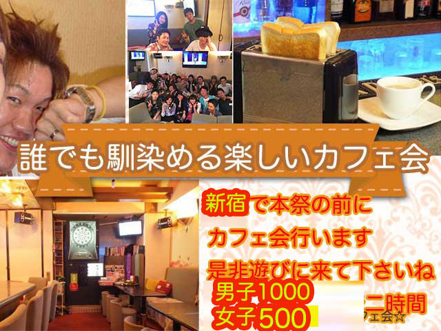 サークルの様子です↓ユーチューブです https://youtu.be/nb5FsRjMd9U ☆彡 ホントお得なカフェ会です ★ 本祭の前に時間があるので、カフェ会を2時間行います 分煙なのでタバコが苦手な人も大丈夫☆★アットホームなイベントなので一人参加・初参加の方も安心☆ この後の本祭も是非大勢来ますので 宜しければ参加下さいね☆ ※ 別途料金かかります ● 勿論イベント参加不安て方は、同じ参加者さんやボランティアスタッフが居るLINEのグルチャに 招待します、下は21歳から上は50代まで居