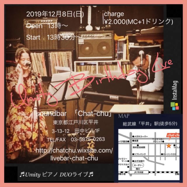 Ëèǯ¤ªÃÂÀ¸Æü¤òChatchu¤Ç·Þ¤¨¤Æ¤¤¤ëÜÆÍ³Èþ¤µ¤ó^^ º£Ç¯¤â¥Ð¡¼¥¹¥Ç¡¼launch¥é¥¤¥Ö¤ò³«ºÅ¤·¤Þ¤¹¡ª º£Ç¯¤ÏJazz Pianist Koji Yamaguchi»á¤È¤ÎDUO♬ Ìþ¤·VoiceßÚÎö¤Ç¸á¸å¤Î¤Ò¤È»þ¤ò¿´ÃϹ¥¤¯²á¤´¤·¤Þ¤·¤ç¤¦¡£ ¿ç̲ÉÔ¤οͤϤ´Ãí°Õ¤¯¤À¤µ¤¤(¾Ð) 2019ǯ£±£²·î£¸Æü¡ÊÆü¡Ë 13:00¡¡OPEN¡¡/¡¡13:30¡¡START MC¡¡2,000±ß¡Ê500±ß¥á¥Ë¥å¡¼¥Á¥±¥Ã¥ÈÉÕ¡Ë ³§ÍͤΤ´ÍèŹ¤ò¿´¤è¤ê¤ªÂÔ¤Á¤·¤Æ¤¤¤Þ¤¹¢ö