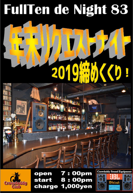 12/12 ËÜÆü¤Ï¡ÖFullTen de Night £¸£³Ìë¡× ¹±ÎãǯËö¥ê¥¯¥¨¥¹¥È¥Ê¥¤¥È¡ª OPEN 19:00 START 20:00 CHARGE 1000±ß¡¡ ²»¸»CD»ý¹þ¤ß¤âOK¤Ç¤¹¡£ ¹¥¤¤Ê¶Ê¤ò¤¼¤Ò¥Õ¥ë¥Æ¥ó¤Ç¡ª 20:00¡Á22:00¥Õ¥ë¥Æ¥ó¥ê¥¯¥¨¥¹¥È¥¿¥¤¥à¡ª¡ª