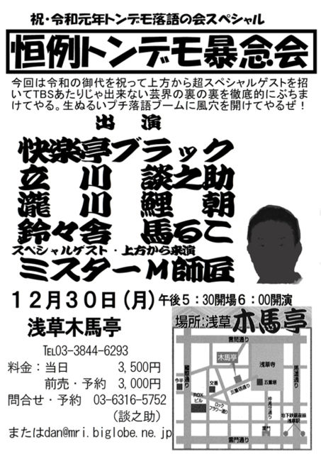 ¡¡¡¡¡¡¡Ø¹±Îã¥È¥ó¥Ç¥â˽ǰ²ñ¡Ù ÎáϤθæÂå¤ò½Ë¤Ã¤Æ¾åÊý¤«¤éĶ¥¹¥Ú¥·¥ã¥ë¥²¥¹¥È¤ò¾·ÂÔ¡ª Æü»þ¡§£±£²·î£³£°Æü¡Ê·î¡Ë¸á¸å£µ¡§30³«¾ì£¶¡§00³«±é ²ñ¾ì¡§ÀõÁðÌÚÇÏÄâ¡¡ä03-3844-6293 ½Ð±é¡§²÷³ÚÄâ¥Ö¥é¥Ã¥¯¡¡Î©ÀîÃÌÇ·½õ¡¡ÂíÀî¸ñÄ«¡¡Î롹¼ËÇϤ뤳 ¥¹¥Ú¥·¥ã¥ë¥²¥¹¥È¡¡¾åÊý·Ý³¦¤Î¥ì¥¸¥§¥ó¥É¡¡¥ß¥¹¥¿¡¼£Í»Õ¾¢ ÎÁ¶â¡§ÅöÆü3,500±ß¡¡Á°Ç䡦ͽÌó¡¡3,000±ß Ìä¹ç¤»¡¦Í½Ìó¡¡03-6316-5752ÃÌÇ·½õ¡¡ ¤Þ¤¿¤Ï¡¡dan@mri.biglobe.ne.jp ¥³¥áÍó¤Ç¤â£Ï£Ë¡ª