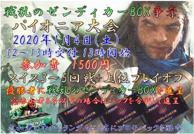 DCI公認 戦乱のゼンディカーBOX争奪パイオニア大会 のご案内です。 受付は 当日 12:00〜13:00 となっておりますので参加希望の場合は上記の時間に遅れないようにご来店ください。当日受付は先着順となります。 参加費は1500円です。 構築形式はパイオニア(「基本セット2014以降の基本セット」&「ラヴニカの回帰以降のエキスパンション」※Unstableは除く)となります。 一部禁止カードがありますので構築の際はご注意ください。 禁止カードについてはこちらをご参照ください↓ http://mtgwiki.com/wiki/%E3%83%91%E3%82%A4%E3%82
