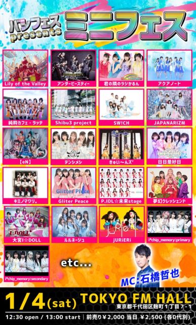 「バシフェスpresentsミニフェス」 日時:01/04(土) 開場12:30 / 開演13:00 会場:TOKYO FM HALL 料金:前売2,000円 / 当日2,500円 (D別) 出演:Lily of the Valley / アンダービースティー / 君の隣のラジかるん / アクアノート/…