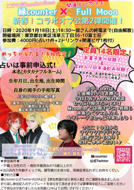 ¡À❣Àꤤ¹¥¤½÷»Ò½¸¹ç❣¡¿ ±ïcounter¡ß³«±¿Àꤤ¥«¥Õ¥§FullMoon ¿·½Õ¥³¥é¥Ü¥ª¥Õ²ñÂè2ÃÆ³«ºÅ·èÄê ¥»¥¯¥Þ¥¤¤ÊÀꤤ»Õ½ïÊý ÃÒÀèÀ¸¤¬±¿±Ä¤¹¤ëÀꤤ¥«¥Õ¥§¤ÇÀꤤ¥ª¥Õ²ñ¤·¤Á¤ã¤¤¤Þ¤¹ Äê°÷14̾¤ÎÁᤤ¼Ô¾¡¤Á ÉáÃʸÀ¤¨¤Ê¤¤Çº¤ß¤ä¤Þ¤Ã¤¿¤êÀꤤ¥È¡¼¥¯¤È½÷»Ò¥È¡¼¥¯¤ò³Ú¤·¤â¤¦ ¢£¾ÜºÙ¢£ Æü»þ:1/18㈯ 18:30¡Á¼«Í³²ò»¶ ¾ì½ê:³«±¿Àꤤ¥«¥Õ¥§FullMoon ÀõÁð »²²ÃÈñ:4000±ß(Àꤤ1·ï+2¥É¥ê¥ó¥¯+³«±¿¥Ô¥¶1ËçÉÕ) ¤ª²Û»Ò¡õ¶âÊ´Æþ¤êÆüËܼò°û¤ßÊüÂê ¢¨¤Ê¤¯¤Ê¤ê¼¡Â轪λ ¡úͽÌóÊýË¡¡ú ±ï