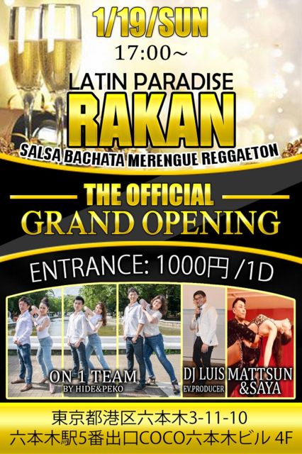 GRAND¡¡OPENING¡¡PARTY 1·î19ÆüÆüÍËÆü¡¡17¡§00¡Á¡¡21¡§00 ¾ì½ê¡¡¡ÖRAKAN TOKYO ¡× ¹Á¶èÏ»ËÜÌÚ3-11-10¡¡COCOÏ»ËÜÌÚ¥Ó¥ë4F¡¡¡¡ ºÇ´ó±Ø¡¡Ï»ËÜÌÚ 5Èֽиý¡¡0ʬ ¥¨¥ó¥È¥é¥ó¥¹¡¡1000±ß¡¡¡¡1¥É¥ê¥ó¥¯¡¡¡¡ ¥À¥ó¥¹SHOW¡¡ON1 ¥Á¡¼¥à¡¡¡ÊBY¡¡HIDE&PEKO¡Ë¡¡ MATTSUN & SAYA ¡¡ DJ¡¡LUIS¡¡¡ÊLATINOCHANELL¡Ë¡¡ ¡¡ ¥½¡¼¥·¥ã¥ë¥¿¥¤¥à¤ÏHIDE&PEKO¤ÈÍÙ¤ì¤ë¥Á¥ã¥ó¥¹¤Ë¥È¥é¥¤¡ª ½é¿´¼ÔÂç´¿·Þ¡ª¡ª¡ª¡ª ¡ú¡ù¡ú¡ù¡ú¡ù¡ú¡ù¡ú¡ù¡ú¡ù¡ú¡ù¡ú¡ù¡ú¡ù¡ú