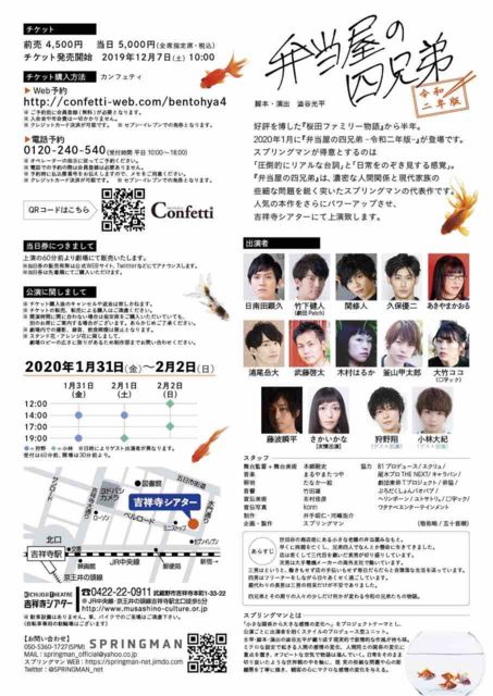 【あらすじ】 世田谷の商店街にある小さな老舗の弁当屋みなもと。早くに両親を亡くし、兄弟四人でなんとか懸命に生きてきました。店は若くして三代目を継いだ長男が切り盛りしています。 次男は大手電機メーカーの海外支社で働いています。三男はというと、働きもせず店の手伝いもせず毎日だらだらと自堕落な生活を送っています。四男はフリーターをしながら日々あくせく過ごしています。親代わりの長男は三男の将来だけが不安でありました。 四兄弟とその周りの人々の少しだけ何かが変わる令和の兄弟たちの物語。 【キャスト】 さかいかな・他 【ス