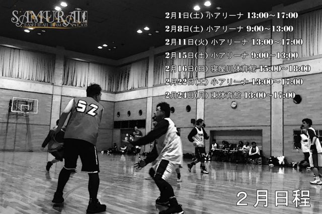 2020年2月8日(土)東大阪小アリーナ 9:00〜13:00 2020年2月11日(火)東大阪小アリーナ 13:00〜17:00 遅刻や早退連絡してください 参加する場合は、名前性別人数を書き込みおねがいします。 軽くアップしゲームします。 募集要項 参加費500円 18歳以上高校生、初心者不可 男女バスケ経験者 レベル 初級〜中級 練習動画 https://www.facebook.com/samuraiBBT/videos/455138805173515/ 諸注意、参加される方は確認お願いします ⇩⇩⇩⇩ http://samuraibbt.wixsite.com/samurai SAMURAI