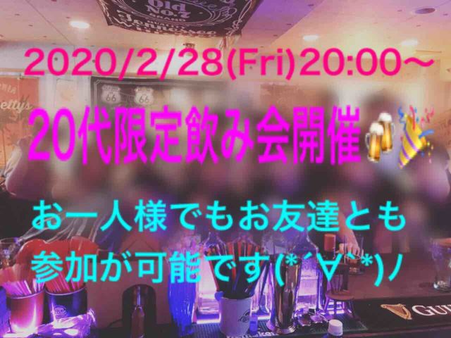 はじめまして♪ゆーきと言います(*´∀`*)ノ 急ですが、本日20時より 20代の方限定の飲み会を開催します♪♪ 定員は20名を予定しておりますが、、、 大幅にキャンセルなどが出てしまいましたので 飲み会に参加していただける方を募集します🥺🌸 詳細は、、、 ・場所 心斎橋のバー(参加される方にお教えします♪) ・時間 20時より3時間の飲み放題♪♪ ・内容 初めての人に会うのはドキドキしますよね?(*^^*) ですがご安心下さい☆ 安心して楽しんで頂けるように努力しますので 人見知りの方でも大丈夫です🙆♂️