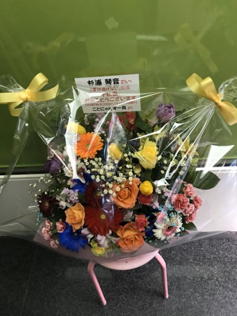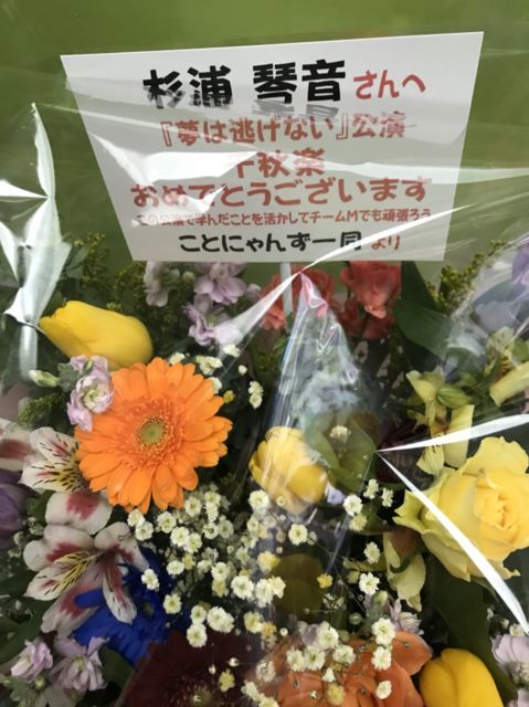 山本彩プロデュース「夢は逃げない」公演が2020/01/31に千秋楽を迎えたので 杉浦琴音さん宛に籠花を贈らせていただきました。 金額:5,000円