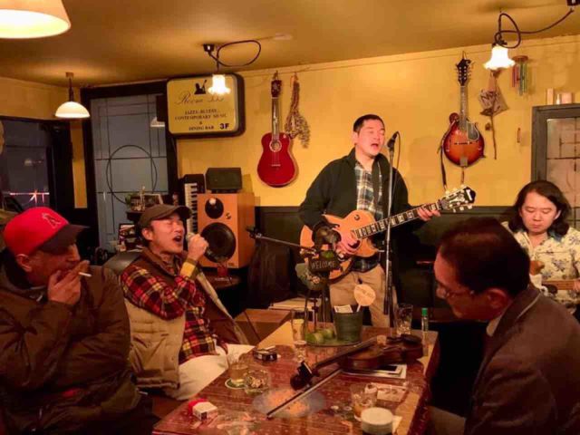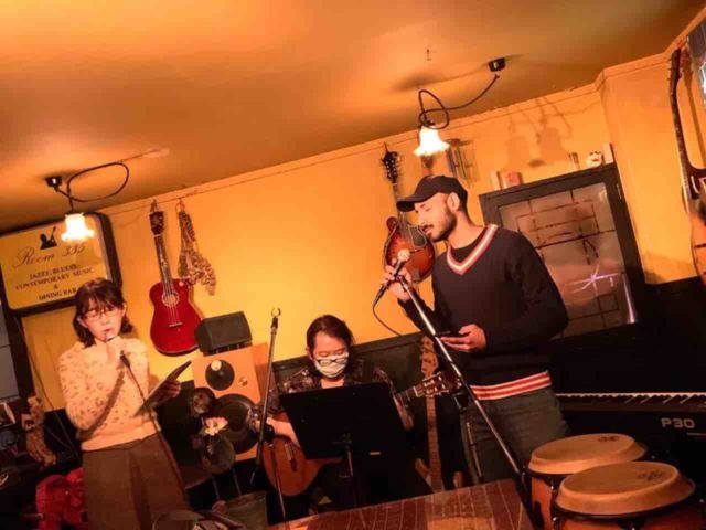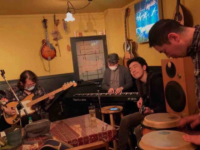 ■毎月、第4金曜日に京都Room335でずっと続けてきた朝まで(笑)ジャムセッション…。 もちろん、今月もやります‼ ⭐マスクの配布、手指の消毒液の用意、換気窓全開(寒かったらゴメンなさい)、と万全の体制です。 ⭐3月26日は第4金曜"正一郎の朝まで(笑)!ジャムセッション at 京都Room335"です! やや盛り上がりでも超絶盛り上がりでも、上手い下手、男女問わず、ご参加お待ちいたします。(写真は前回の様子byマスター) Jazz、Blues、Rock、Folk、Popular、Original等なんでもOK! ギター、ベース、歌で正一郎