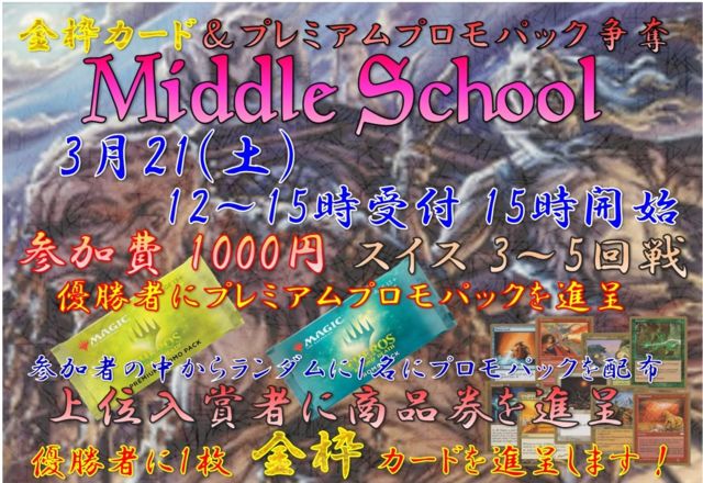DCI¸øÇ§¥«¥¸¥å¥¢¥ë¥¤¥Ù¥ó¥È ¶âÏÈ¥«¡¼¥É¡õ¥×¥ì¥ß¥¢¥à¥×¥í¥â¥Ñ¥Ã¥¯ÁèÃ¥ ¥ß¥É¥ë¥¹¥¯¡¼¥ëÂç²ñ ¤Î¤´°ÆÆâ¤Ç¤¹¡£ ¼õÉÕ¤Ï ÅöÆü¡¡12¡§00¡Á15¡§00 ¤È¤Ê¤Ã¤Æ¤ª¤ê¤Þ¤¹¤Î¤Ç»²²Ã´õ˾¤Î¾ì¹ç¤Ï¾åµ¤Î»þ´Ö¤ËÃÙ¤ì¤Ê¤¤¤è¤¦¤Ë¤´ÍèŹ¤¯¤À¤µ¤¤¡£Í½Ìó¼ÔÍ¥Àè¡£ÅöÆü»²²Ã¤ÏÀèÃå½ç¤È¤Ê¤ê¤Þ¤¹¡£ »²²ÃÈñ¤Ï1000±ß¤Ç¤¹¡£ ¹½ÃÛ·Á¼°¤Ï¥ß¥É¥ë¥¹¥¯¡¼¥ë¤È¤Ê¤ê¤Þ¤¹¡£ »ÈÍѽÐÍè¤ë¥«¡¼¥É¤Ï¤³¤Á¤é¤ò¤´»²¾È²¼¤µ¤¤¢ ¡¦Âè4ÈÇ(Fourth Edition/4E/4ED)¡¡1995ǯ4·îȯÇä ¡¦¥¢¥¤¥¹¥¨¥¤¥¸(Ice Age/IA/ICE)¡¡1995ǯ6·îȯÇä ¡¦¥¯¥í¥Ë¥¯¥ë(Chronicles/CH/CHR)¡¡1995ǯ7·îȯÇä ¡¦¥ë¥Í¥Ã¥µ