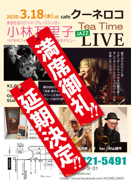 3·î¤Î¥é¥¤¥ÖͽÄê¤Ç¤¹¤¬¡¢3·î15Æü¤ÎÂçºåÆîËÙ¹¾¤Î¥é¥¤¥Ö¥Ï¥¦¥¹¡Ö¥³¡¼¥Ê¡¼¥¹¥È¡¼¥ó¡¦¥Ð¡¼¡×¤Ç¤Î ¥Á¥ã¥¯¥é¤È°ìϺfeat,¥®¥¿¡¼¥¿¥í¡¼¤È¤Î¥¸¥ç¥¤¥ó¥È¥é¥¤¥Ö¡¢ ¤½¤·¤Æ3·î31Æü¤ÎµþÅÔÀ¾±¡¤Î¥é¥¤¥Ö¥Ï¥¦¥¹¡Ö¥¦¡¼¥é¥é¡×¤Ç¤Î ¡Öºù¤ò¸«¤ë²ñ2020¡×¥é¥¤¥Ö¥¤¥Ù¥ó¥È¤Ë´Ø¤·¤Æ¤ÏͽÄêÄ̤ê·è¹Ô¡¢ 3·î18Æü̧Ì̡֥«¥Õ¥§ ¥¯¡¼¥Í¥í¥³ TEA TIME JAZZ LIVE¡×¤Ë´Ø¤·¤Æ¤Ï±ä´ü¤È¤¤¤¦¤³¤È¤Ë¤Ê¤ê¤Þ¤·¤¿¡£ ¥³¥í¥Ê¥¦¥£¥ë¥¹ÌäÂê¤Ë´Ø¤·¤Æ¤Î³ÆÅ¹¤ÎÂбþ¤¬Ê¬¤«¤ì¤¿·Á¤È¤Ê¤Ã¤Æ¤¤¤Þ¤¹¡£ ¤³¤Î·ï¤Ë¤ÏÍÍ¡¹¤ÊÂбþ¡¢¹Í¤¨Êý¤¬¤¢¤êÆÀ¤ë¤È»×¤¤¡¢ »ä¤È¤·¤Æ¤Ï¤½¤ì¤¾¤ì¤Î¤ªÅ¹¤ÎÊý¤Î¤´È½ÃǤ˽¾¤Ã¤Æ¤ä