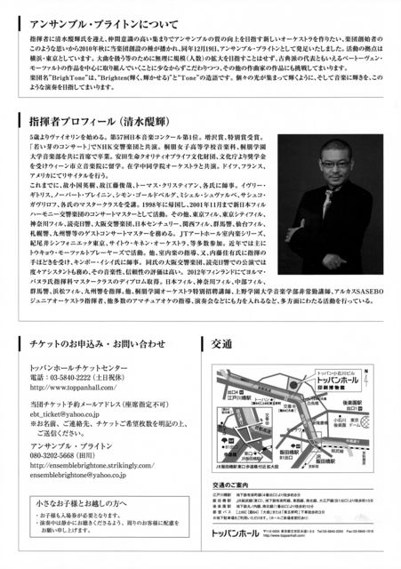 書き込み失礼いたします。 「アンサンブル・ブライトン」次回演奏会のご案内です。 私たちは横浜・東京を拠点に活動しているアマチュアオーケストラです。 次回、第18回演奏会に向けて、準備をしております。 ================= Ensemble BrighTone The 18th Concert アンサンブル・ブライトン 第18回演奏会 【振替】2020年3月15日(日)→4月29日(水・祝)に変更となりました。 13:30開場 14:00開演 曲目 モーツァルト:歌劇「フィガロの結婚」K492序曲 モーツァルト:交響曲第35番「ハフナー」K38