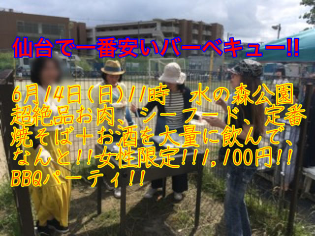 いつもスマイル会参加ありがとうございます!今回もやります♪大好評バーベキュー! みんなで美味しいお肉をジャンジャン焼いて、新しい仲間を見つけましょう♪毎回バーベキューのクオリティーじゃないと喜んで貰ってます(^o^)駐車場もあります! 日時 6月13日(土)11:00〜15:00 場所 七北田公園 会費 男性3500円 女性3000円 当日500円+ バーベキューコンロなどお手伝い頂ける方は500円オフさせて頂きます。 持物 椅子があると楽に座れます。 お肉の量は一人あたり300グラム以上で計算して準備します。その他にも焼きそば、野菜、足り