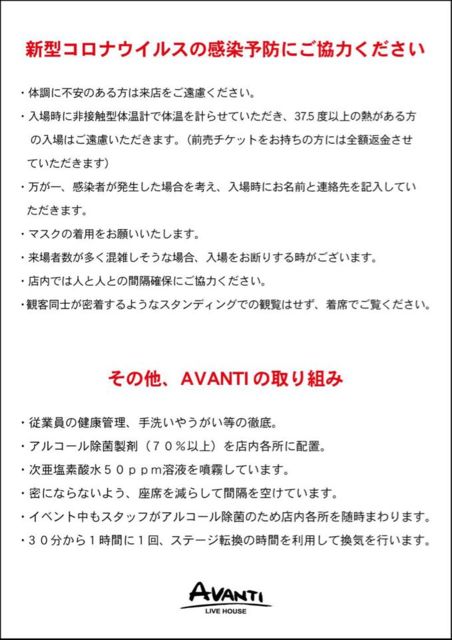 ¹ñ¤Î¶ÛµÞ»öÂÖÀë¸À¤Ï²ò½ü¤µ¤ì¤¿¤â¤Î¤Î°¦Ã詤Ï5/31¤Þ¤Ç·ÑÂ³Ãæ¤Ç¤¹¡£ AVANTI¤â5·îËö¤Þ¤Ç±Ä¶È¤ò¼«½Í¡¢6/2¤è¤ê¥«¥Õ¥§¡¦¥¹¥¿¥¸¥ª¤Î±Ä¶ÈºÆ³«¡¢6/12¤è¤ê¥é¥¤¥Ö¥¤¥Ù¥ó¥È¤òºÆ³«¤ÎͽÄê¤Ç¤¹¡£ ºòǯ½Ð±é¤Î¤ªÏä·¤ò夤¤¿¤È¤¤Ë¤Ï¸½ºß¤Î¾õ¶·¤òÁ´¤¯ÁÛÁü¤â¤·¤Æ¤¤¤Þ¤»¤ó¤Ç¤·¤¿¤¬¡¢º£²óºÆ³«¤Î¥¹¥±¥¸¥å¡¼¥ë¤È¥Ô¥Ã¥¿¥ê½Å¤Ê¤ê¤Þ¤·¤¿¡ª ¤Þ¤À¤Þ¤À°ÊÁ°¤ÎÍͤʷÁ¤Ç¤Î¥é¥¤¥Ö¤ÏÆñ¤·¤¤¤«¤â¤·¤ì¤Þ¤»¤ó¤¬¡¢AVANTI¤ÈÁêÃ̤·¤Ê¤¬¤é¿·¤·¤¤¥é¥¤¥Ö¥Ï¥¦¥¹¤Ç¤Î¥¤¥Ù¥ó¥È¤Î·Á¤ò¹Í¤¨¡¢ºÆ¥¹¥¿¡¼¥È¤ò¤ª¼êÅÁ¤¤¤Ç¤¤¿¤é¤È»×¤Ã¤Æ¤¤¤Þ¤¹¡£ ¹¤¤¥¹¥Æ¡¼¥¸¤ÈÈþÌ£¤·¤¤¥´¥Ï¥ó¤Ç»äã¤âÂç¹¥¤¤Ê¥é¥¤¥Ö¥Ï