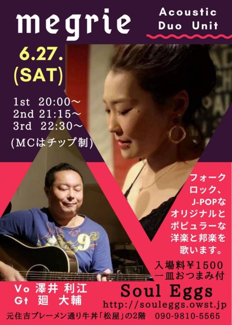 megurie £¶·î£²£·Æü(ÅÚÍËÆü)¤Ï¡¢Í̾¥é¥¤¥ô¥¹¥Ý¥Ã¥È¤Ç³èÌöÃæ¤Î²Î¼ê¡Öß·°æ Íø¹¾¡×¤¬¡¢¥Ù¥Æ¥é¥ó¥¢¥³¡¼¥¹¥Æ¥£¥Ã¥¯¥®¥¿¡¼¡Ö²ö ÂçÊå¡×¤È¤Î¥Ç¥å¥ª¥æ¥Ë¥Ã¥È¡Ömegrie¡×¤Ç¡¢À¸¥é¥¤¥ô(ÅꤲÁ¬¥é¥¤¥ô)¤·¤Þ¤¹¡£🎼🎤🎶🎸🎶🎸😄 ¤³¤ÎÆü¤Î¶Ê¤Ï¡¢J¥Õ¥©¡¼¥¯,¥í¥Ã¥¯¡¢J-Pop¤Ê¥ª¥ê¥¸¥Ê¥ë¥½¥ó¥°¤È¥Ý¥Ô¥å¥é¡¼¤ÊÍγڡ¢Ë®³Ú¤Ê¤ÉÍÍ¡¹¤Ê¥¸¥ã¥ó¥ë¤ò²Î¤¤¤Þ¤¹❗ ¤¤Ã¤È³§Íͤ¬Ä°¤¤¤¿»ö¤¬Í¤ë²Î¤âÅо줷¤Þ¤¹¤è¡Á(^o^¡¶ ÁÇŨ¤Ê²Î¤È±éÁÕ¤ÈÈþÌ£¤·¤¤¤ª¼ò¤Ë¿ì¤Ã¤Æ³Ú¤·¤ß¤Þ¤·¤ç¤¦¡£ 🎉🎼🎤🎸🎼