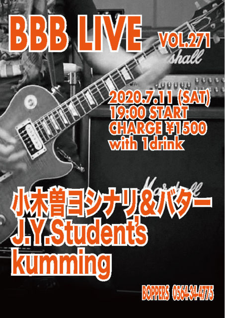 BBB LIVE 271 2020.7.11 (SAT) 19:00 START CHARGE \1500 with 1drink 小木曽ヨシナリ&バター J.Y Student's kumming