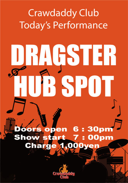 8/14 ËÜÆü¤Î¥é¥¤¥Ö¡¡ÂßÀڥ饤¥Ö¡¡ DRAGSTER ¡õ HUB SPOT Live¡¡ OPEN 18:30 START 19:00 CHARGE 1000±ß