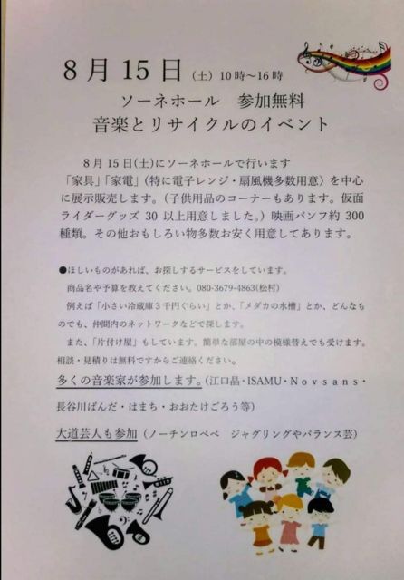 ̾¸Å²°»ÔË̶軳ÅÄ ÂçÁ¾º¬½»Âð1Åï1³¬¤Ëºß¤ë»ñ¸»¥ê¥µ¥¤¥¯¥ë¡¢ÃϰèÁêÃÌÁë¸ý¡¢¥³¥Ô¡¼¥³¡¼¥Ê¡¼¡¢¥·¥ç¥Ã¥×¡¢¥«¥Õ¥§¡¢¥¤¥Ù¥ó¥È¥Û¡¼¥ë¤È¤¢¤é¤æ¤ë¥³¥ó¥Æ¥ó¥Ä¤¬Â·¤Ã¤¿Áí¹çŹÊÞ¡Ö¥½¡¼¥Í¤ª¤ª¤¾¤Í¡×¤Ë¤Æ·îÎã¤Ç³«ºÅ¤µ¤ì¤ë·¡¤ê½Ð¤·Êª»Ô¡¢¤ªÊõõ¤·Åª¤Ê¥ê¥µ¥¤¥¯¥ëŸ¼¨ÈÎÇä²ñ¤È¥é¥¤¥Ö¤Î¥³¥é¥Ü¥¤¥Ù¥ó¥È¡£ ³Æ¼ï½Ðʤâͤꡣ ¢¢8/15(ÅÚ) ¸æÂê: ¡Ø¥ê¥µ¥¤¥¯¥ë¥Þ¡¼¥±¥Ã¥Èin¥½¡¼¥Í¤ª¤ª¤¾¤Í¡Ù ¾ì½ê: »³Åġ֥½¡¼¥Í¤ª¤ª¤¾¤Í¡× http://sone¡¾ozone.com ½»½ê: ̾¸Å²°»ÔË̶軳ÅÄ2ÃúÌÜ11-62 ÂçÁ¾º¬½»Âð1Åï1³¬ ¸òÄÌ: ¡¦JRÃæ±ûÀþ¡ÖÂçÁ¾º¬¡×(Ë̸ý)&Ãϲ¼Å´Ì¾¾ëÀþ¡ÖÂçÁ¾º¬¡×&̾ŴÀ¥¸ÍÀþ