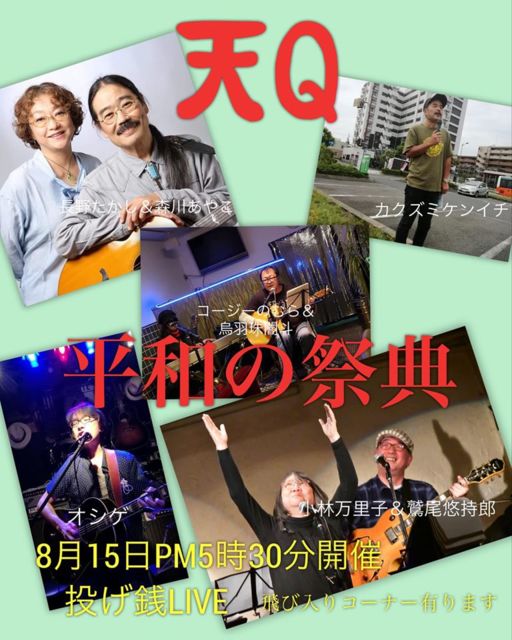 ²¼µ¤ÏÅ·Q¤Î¥Þ¥¹¥¿¡¼¤¬FaceBook¤Çȯ¿®¤µ¤ì¤¿¤â¤Î¤Ç¤¹¡£ ¹ðÃÎ 8·î15Æü³«ºÅ ¡ÚÅ·Q.ʿϤκ×ŵ?¡Û ½Ð±é ?ĹÌ¤«¤·¡õ¿¹À¤ä¤³ ?¾®ÎÓËüΤ»Ò¡õÏÉÈøÍª»ýϺ ?¥«¥¯¥º¥ß¥±¥ó¥¤¥Á ?¥ª¥·¥² ?¥³¡¼¥¸¡¼¤Î¤à¤é¡õ±¨±©¼î°ÇÅÍ ¡¡(Èô¤ÓÆþ¤ê¥³¡¼¥Ê¡¼¤â¤¢¤ê¤Þ¤¹¡£) 8·î15ÆüPM5»þ30³«ºÅ ÅꤲÁ¬LIVE °Ê¾å¤Ç¤¹¡£ ¤Á¤Ê¤ß¤ËĹÌ¤«¤·¤µ¤ó¤Ï¸Þ¤Ä¤ÎÀÖ¤¤É÷Á¥¤Î¥Ù¡¼¥·¥¹¥È¤ÎÊý¤Ç¤¹¡£