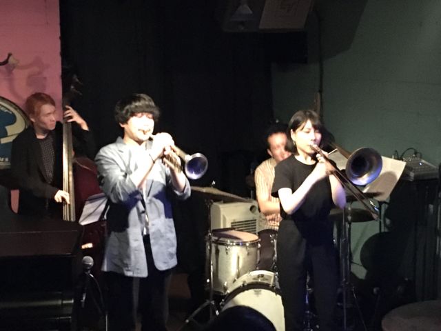9月2日(水)19:30〜21:50(2セット) 山田丈造 LIVE <出演>山田丈造 QUARTET 山田丈造(trumpet) 治田七海(trombone) 冨樫マコト(bass) 木村 紘(drums) ライヴチャージ 1500円(入れ替え無し)、 テーブルチャージ 500円(ナッツ類食べ放題)、 ドリンク類 500円〜、 従いまして、ミニマム料金は2500円です。 ■当店ではもうすっかりお馴染み、 今注目の若手トランペッター山田丈造が アメリカ留学が決まっている 同郷北海道の超若手トロンボニスト治田七海を迎えての スペシャル・カルテットでやって来ます。 それにし
