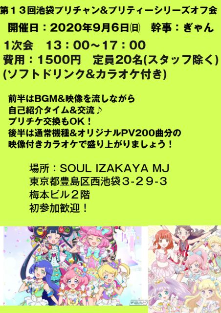 ¢¨¤ªÅ¹»Ù±çŽ¥±þ±ç¤Î°ì´Ä¤È¤·¤Æ³«ºÅ¤·¤Æ¤¤¤Þ¤¹¢¨ Âè13²ó¥×¥ê¥Á¥ã¥ó&¥×¥ê¥Æ¥£¡¼¥·¥ê¡¼¥º¥ª¥Õ²ñ (½é»²²Ã¡¢ÅÓÃæ»²²Ã´¿·Þ¡ù) ¡ü´´»ö¤è¤ê°§»¢¡ü ¤³¤ó¤Ë¤Á¤ï¡ª´´»ö¤Î¤®¤ã¤ó¤Ç¤¹ ÃÓÂÞ¤ÎÉáÃÊ¥¢¥Ë¥½¥ó¤Î¥æ¥ë¥ò¥¿¥ª¥Õ²ñ¤Ç»È¤Ã¤Æ¤¤¤ë¥ª¥·¥ã¥ì¤Ê¡ÖSOUL IZAKYA MJ¡×¤Ë¤Æ¡¢¥×¥ê¥Æ¥£¡¼¥·¥ê¡¼¥º¤¬Âç¹¥¤¤Ê³§ÍͤÈßê¤á¤¤ò¶¦Í¤·³Ú¤·¤á¤ë¥«¥é¥ª¥±¥ª¥Õ²ñ¤Ç¤¹¡ª ¥×¥ê¥Æ¥£¡¼¥ê¥º¥àAD¡¦DMF¡¦RL¤Î³Æ¥·¥ê¡¼¥º¤ä¡¢¥×¥ê¥Ñ¥é¡¦¥¥é¤Ã¤È¥×¥ê¥Á¥ã¥ó¡¢KING OF PRISM¤¬¹¥¤¤ÊÊý¤Ç¤¢¤ì¤Ðï¤Ç¤â´¿·Þ¤Ç¤¹(*^-^*) ¿§¡¹¸ì¤ê¤¿¤¤¿Í¤âÀ§È󤪵¤·Ú¤Ë¤ª±Û¤·¤¯¤À¤µ¤¤¡ª