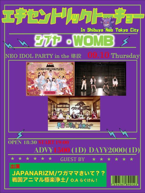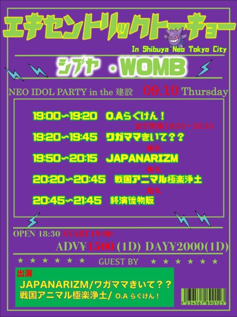 ¡Ö¥¨¥¥»¥ó¥È¥ê¥Ã¥¯¥È¡¼¥¥ç¡¼ in Shibuya Neo Tokyo City¡× Æü»þ¡§09/10(ÌÚ) ³«¾ì18:30 / ³«±é19:00 ²ñ¾ì¡§½ÂëWOMB ÎÁ¶â¡§Í½Ìó1,500±ß / ÅöÆü2,000±ß (1DÊÌ) ½Ð±é¡§Àï¹ñ¥¢¥Ë¥Þ¥ë¶Ë³Ú¾ôÅÚ /J APANARIZM / ¥ï¥¬¥Þ¥Þ¤¤¤¤Æ¡©¡© ͽÌó¡§https://docs.google.com/forms/d/e/1FAIpQLSdzd6laFX_mxclX52UBMoeyMVXlJPQNs-Nt82TIEGKhJlcSFQ/viewform ¢¨µ×¡¹¤ÎͽÌó¥Õ¥©¡¼¥à^^; ¢¨¤æ¤ê¤¢Éü³è¢ö