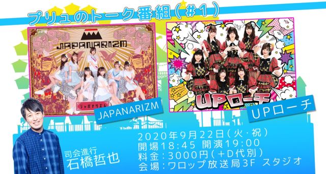 ¡Ö¥×¥ê¥å¤Î¥È¡¼¥¯ÈÖÁÈ¡× Æü»þ¡§09/22(²Ð½Ë) ³«¾ì18:45 / ³«±é19:00 ²ñ¾ì¡§WALLOPÊüÁ÷¶É ÎÁ¶â¡§3,000±ß (DÊÌ)¡¡https://t.livepocket.jp/e/yra_0 ¼õÉÕ¡§17(ÌÚ) 20:00 〜 22(²Ð) 19:00¡¡¢¨£³£³Ì¾¸ÂÄê¡¡ ½Ð±é¡§JAPANARIZM / UP¥í¡¼¥Á