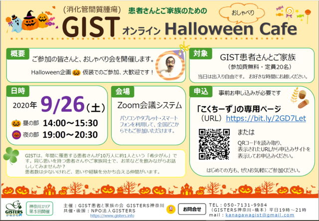 GISTERS¿ÀÆàÀî¤Ç¤Ï¡¢9/26(ÅÚ)14:00¡Á¡¢19:00¡Á¤Î2²ó GIST´µ¼Ô¤µ¤ó¤È²È²¤ÎÊý¡¹¤Ç¡¢¥ª¥ó¥é¥¤¥ó¤Ç¤ª¹¥¤¤Ê¤ª°û¤ßʪ¤ò»ý¤Á´ó¤ê¡¢¤æ¤Ã¤¯¤ê°û¤ß¤Ê¤¬¤é¡¢Í¥¤·¤¯¡¢³Ú¤·¤¤¡¢Ìþ¤·¤Î¶õ´Ö¤Ç¤Î¤ª¤·¤ã¤Ù¤ê²ñ¤ò³«ºÅ¤·¤Þ¤¹¡£ º£²ó¤Ï¡¢¥Ï¥í¥¦¥£¥ó¤È¤Î̾¤ÎÄ̤ꡢ²¾Áõ¤Ç¤Î»²²Ã¤âÂç´¿·Þ¤Ç¤¹¡£ ¤½¤·¤ÆÃë¤ÎÉô¡¢Ìë¤ÎÉô¤Î£²ÉôÀ©¤Ë¤Ê¤Ã¤Æ¤¤¤Þ¤¹¡£ ¤ª¹¥¤¤Ê¤ª»þ´Ö¤«¤é¤É¤¦¤¾¤ª±Û¤·¤¯¤À¤µ¤¤¡£ ¡ÚÆü»þ¡Û ¡ùÃë¤ÎÉô¡§9/26(ÅÚ)14:00¡Á15:30 ¡úÌë¤ÎÉô¡§9/26(ÅÚ)19:00¡Á20:30 ¡ÚÂоݡÛGIST´µ¼Ô¤µ¤ó¤È¤´²È²(Äê°÷20̾¡Ë ¡Ú¾ì½ê¡ÛZOOM²ñµÄ¥·¥¹¥Æ¥à ¥ª¥ó¥é¥¤¥ó¤ÇÁ´¹ñ¤É¤³¤«¤é¤Ç¤â