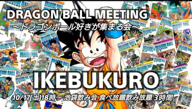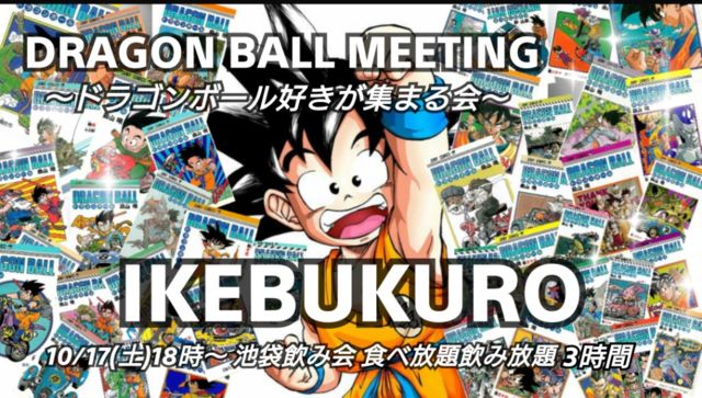 【DRAGON BOLL MEETING】 〜ドラゴンボール好きが集まる会〜 10/17(土)18時〜21時 池袋飲み会 食べ放題&飲み放題 ★二次会カラオケあり★ 21時半頃〜。 ★イベントPR動画★ DRAGON BOLL MEETING vol1 https://youtu.be/vX4lXWQ-UI4 https://youtu.be/vX4lXWQ-UI4 皆さん、こんにちは! 主催の YUUMAです。 池袋駅東口。 駅から近くてお洒落なお店で、皆で楽しく飲みながら、ドラゴンボールトークしましょう。 −−−−−−−−−−−−−−− ★お楽しみ企画あるよ★ ドラゴンボールのグッズ皆でわぃわぃ開封してみた。 ※幹事が自腹で御用