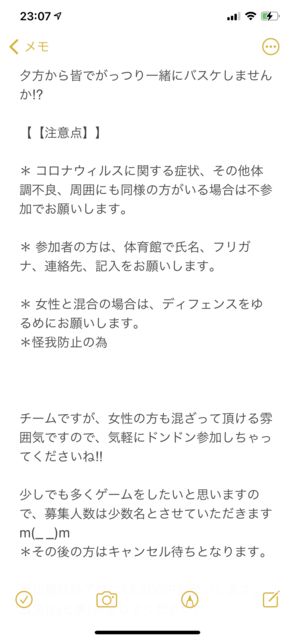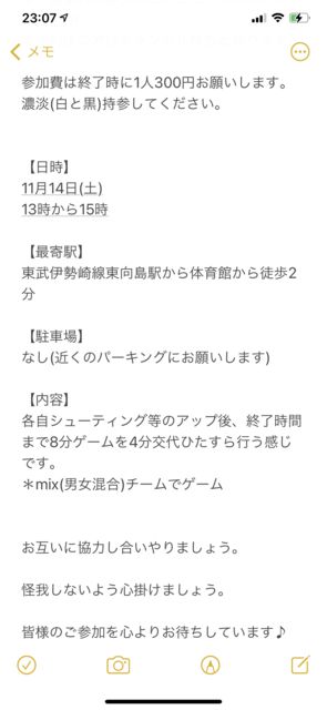 参加費 300円 持ち物 マスク、ゲーム用濃淡Tシャツ等、バスパン、シューズ、飲み物、ボール(あれば)、着替え・・・ 追加参加条件及び変更等 氏名・住所・連絡先の参加者名簿保管します。