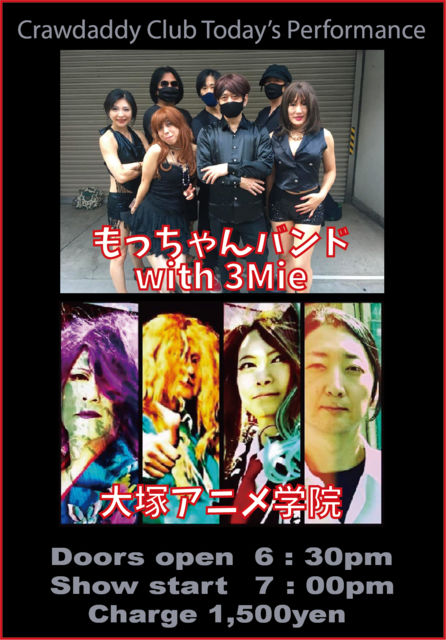 11/14 本日のライブ もっちゃんバンドwith 3Mie & 大塚アニメ学院 ライブ OPEN 18:30 START 19:00 CHARGE 1500円 よろしくお願いいたします!