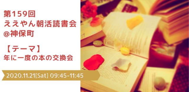 ええやん朝活年に一度の恒例行事(?) 「本の交換会」を行います! 参加者同士でおすすめの本を持ち寄って それぞれが紹介しあった後に その場で交換し合うのが通常の本の交換会ですが ええやん朝活の本の交換会はひと味違います。 持ってきた本を相手に見せずに紹介しあって その紹介をヒントに欲しい本を選びます。 なので、その日どんな本と巡り会えるかは 最後の最後までわかりません! だからといって相手にわからないように紹介しあうゲームでもありませんので うまく紹介できなくても全然OK! そのへんはかしこまらずにお気