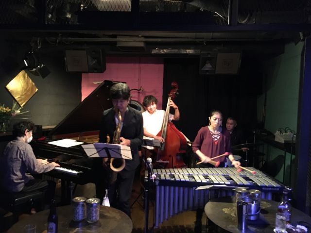 12月22日(火)19:30〜21:50(2セット) 江古田クインテット LIVE <出演>江古田クインテット 宮地スグル(tenor sax) 中島香里(vibraphone) 三木成能(piano) 鈴木克人(bass) 公手徹太郎(drums) ライヴチャージ 1500円(入れ替え無し)、 テーブルチャージ 500円(ナッツ類食べ放題)、 ドリンク類 500円〜、 従いまして、ミニマム料金は2500円です。 ■江古田クインテットは 江古田在住ウレッコ・ジャズマンが結集した強力ユニットで、 チック・コリア、ジャコ・パストリアス、マイケル・ブレッカー等の フュージョン・ナ